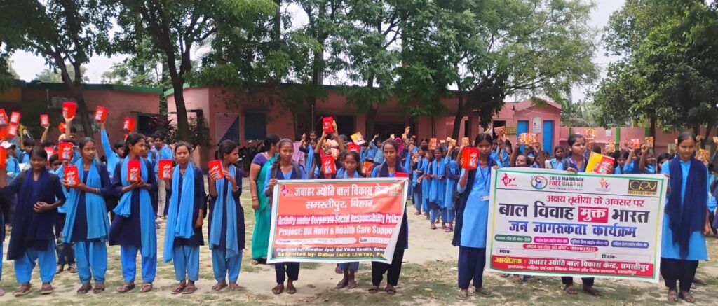 08 अप्रैल, 2026 |समस्तीपुर | :अक्षय तृतीया के अवसर पर होने वाले बाल विवाह की रोकथाम के लिए बुधवार को जवाहर ज्योति बाल विकास केंद्र के नेतृत्व में एक व्यापक जन जागरूकता कार्यक्रम का आयोजन किया गया। बिशनपुर बांदे स्थित उत्क्रमित उच्च माध्यमिक विद्यालय में आयोजित इस कार्यक्रम को महिला एवं बाल विकास निगम तथा जिला प्रशासन, समस्तीपुर के साझा सहयोग से सफलतापूर्वक संपन्न किया गया।