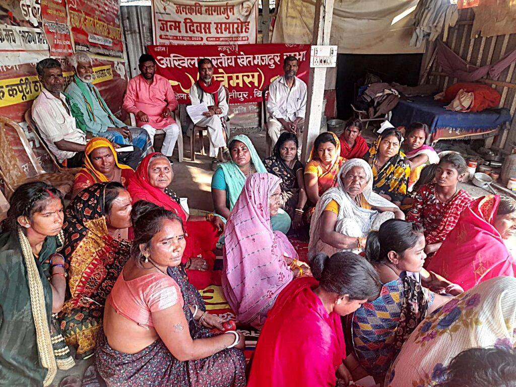 समस्तीपुर | 9 मार्च, 2026 शहर के लेनिन आश्रम मालगोदाम चौक परिसर में सोमवार को अखिल भारतीय खेत एवं ग्रामीण मजदूर सभा (खेग्रामस) की एक महत्वपूर्ण बैठक आयोजित की गई। शहरी मजदूर महेंद्र साह की अध्यक्षता और मनोज पोद्दार के संचालन में हुई इस बैठक में जिले के विभिन्न अंचलों में गरीबों और भूमिहीनों को उजाड़ने की कार्रवाई पर गहरा रोष व्यक्त किया गया।