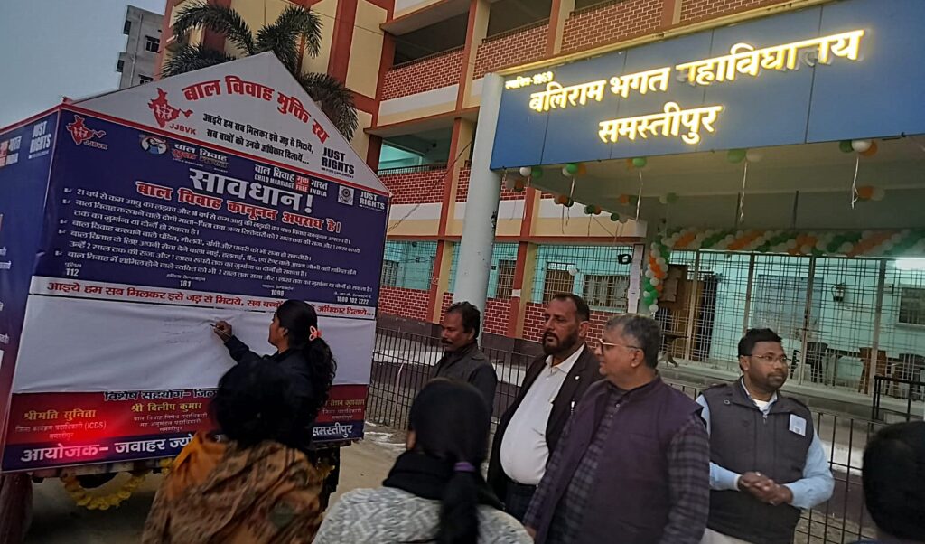 समस्तीपुर | निज प्रतिनिधि समाज में व्याप्त कुरीतियों के विरुद्ध जंग छेड़ते हुए समस्तीपुर के बलिराम भगत महाविद्यालय (बी.आर.बी. कॉलेज) के सभागार में सोमवार को ‘बाल विवाह मुक्त भारत’ कार्यशाला का भव्य आयोजन किया गया। इस कार्यक्रम में मुख्य अतिथि के रूप में उपस्थित अनुमंडल पदाधिकारी (एसडीओ) दिलीप कुमार ने महाविद्यालय परिसर से, जागरूकता फैलाने के उद्देश्य से ‘बाल विवाह मुक्ति रथ’ को हरी झंडी दिखाकर रवाना किया।