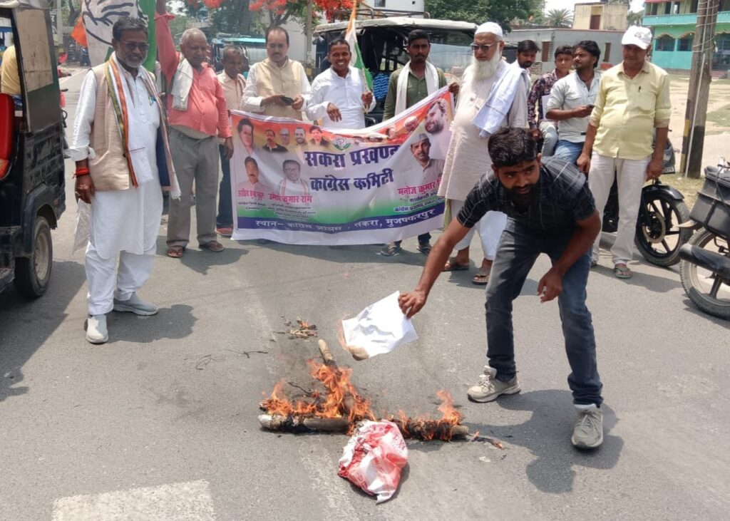 सकरा |मुजफ्फरपुर | ‘महिला आरक्षण बिल 2023’ को लेकर सियासत गरमा गई है। मुजफ्फरपुर जिले के सकरा और मुरौल प्रखंड कांग्रेस कमेटी ने संयुक्त रूप से केंद्र की नरेंद्र मोदी सरकार के खिलाफ मोर्चा खोल दिया है। कार्यकर्ताओं ने सकरा प्रखंड कांग्रेस आश्रम कार्यालय से पैदल मार्च निकालते हुए सकरा प्रखंड मुख्यालय (आश्रम चौक) तक प्रदर्शन किया और केंद्र सरकार का पुतला फूंका। इस दौरान कार्यकर्ताओं ने सरकार की नीतियों के खिलाफ जमकर नारेबाजी की।