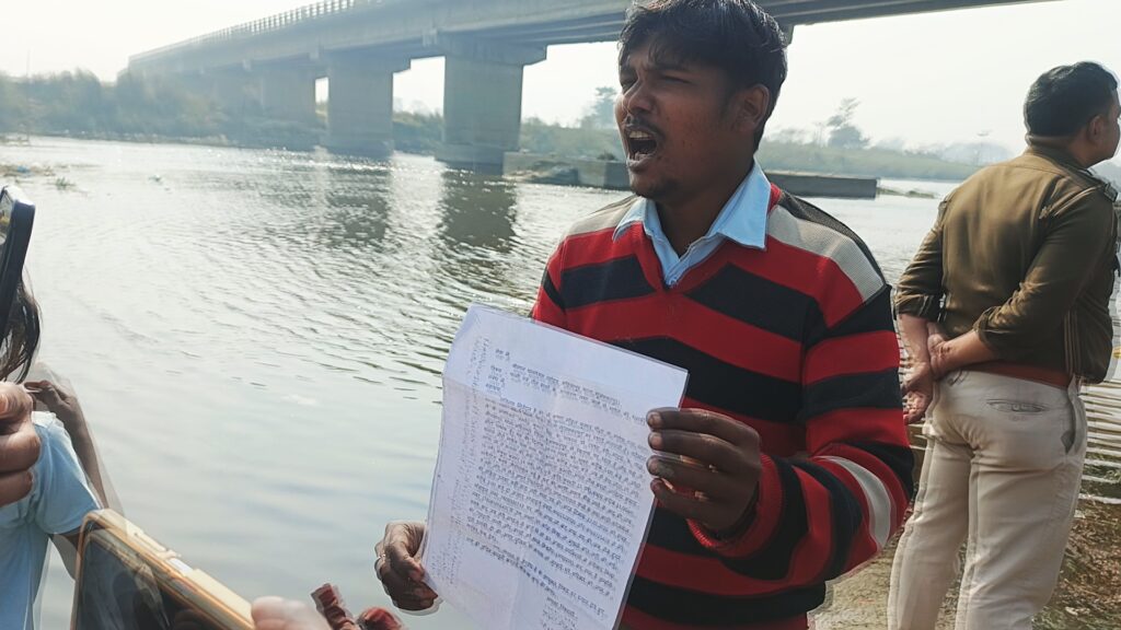 चंदवारा घाट पुल के नीचे नदी किनारे मिले चार शवों की तस्‍वीर