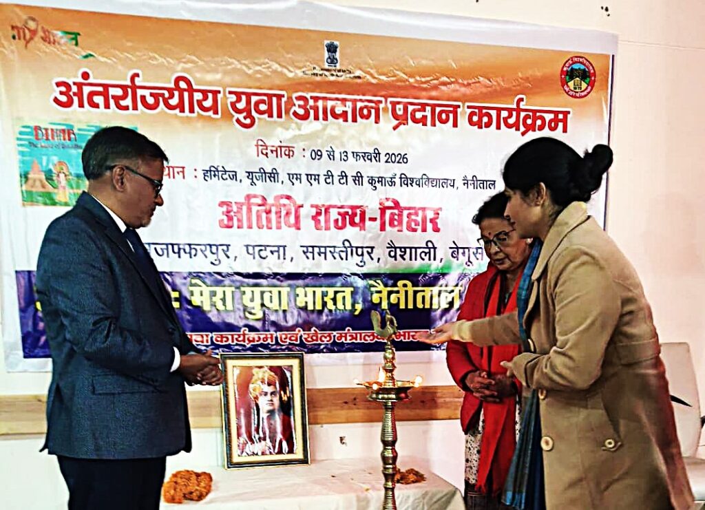नैनीताल/मुजफ्फरपुर। ‘मेरा युवा भारत’ कार्यक्रम के तहत उत्तराखंड के नैनीताल में 9 से 13 फरवरी तक आयोजित पांच दिवसीय अंतर्राज्यीय युवा आदान-प्रदान कार्यक्रम का भव्य आगाज हुआ। इस कार्यक्रम में बिहार की समृद्ध संस्कृति का प्रतिनिधित्व करने के लिए राज्य भर से कुल 37 प्रतिभागियों का चयन किया गया है, जिसमें मुजफ्फरपुर जिले के 7 प्रतिभागी और 1 एस्कॉर्ट शामिल हैं।