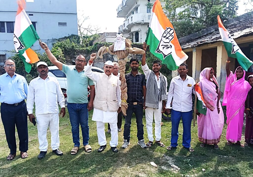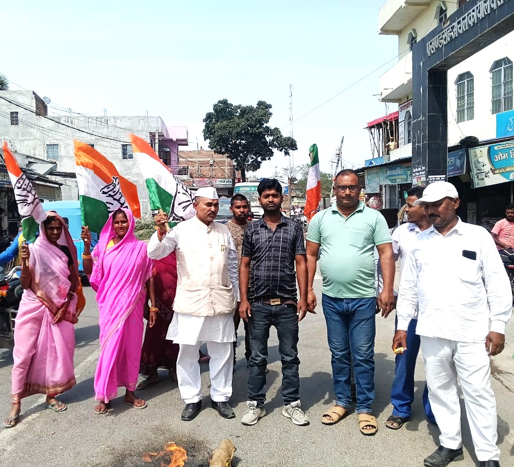 सकरा ब्लौक गेट (आश्रम चौक) पर पुतला दहन करते सकरा प्रखंड कांग्रेस इकाई के नेतागण