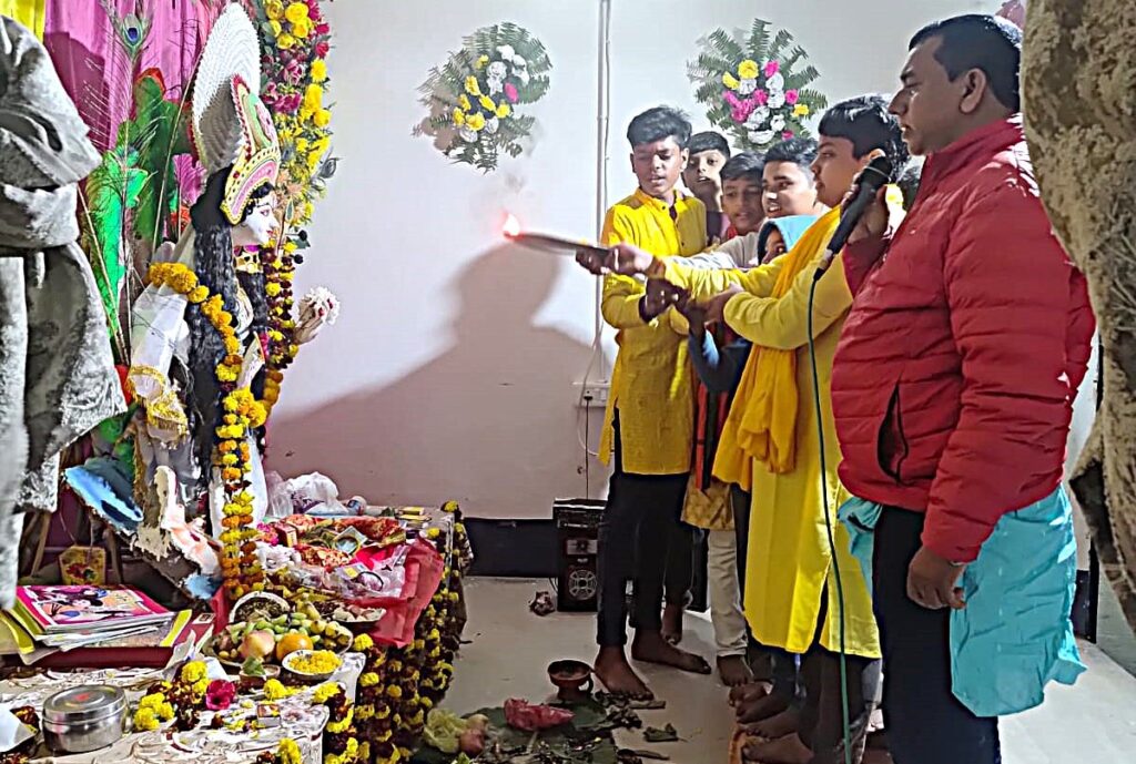 पुरोहितों के वैदिक मंत्रोच्चार के बीच कक्षा दसवीं के छात्र अमन, गौरव, आयुष, अंश एवं वेदप्रकाश ने यजमान की भूमिका निभाकर पूजा संपन्न कराई। इस अवसर पर छात्राओं ने अपनी कला का प्रदर्शन भी किया। समीक्षा, रागिनी, सुप्रिया, माही और आयुषी सहित दर्जनों छात्राओं ने ‘वर दे वीणा वादिनी’ गीत पर मंत्रमुग्ध कर देने वाली सांस्कृतिक प्रस्तुति दी, जिसे अभिभावकों ने खूब सराहा।