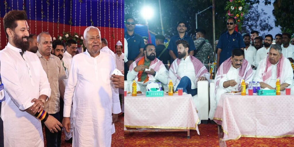 पटना। राजधानी के शहीद पीर अली मार्ग स्थित लोक जनशक्ति पार्टी (रामविलास) के प्रदेश कार्यालय में सोमवार को आयोजित दावत-ए-इफ्तार सियासी मेल-मिलाप का केंद्र बनी। इस आयोजन में बिहार के मुख्यमंत्री नीतीश कुमार विशेष रूप से शामिल हुए, जहाँ मेजबान और केंद्रीय खाद्य प्रसंस्करण उद्योग मंत्री चिराग पासवान ने गर्मजोशी से उनका स्वागत किया।